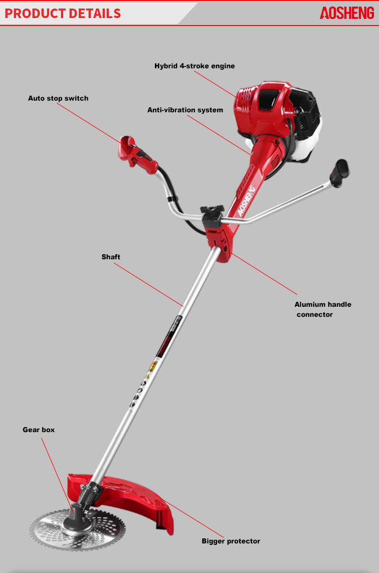 เครื่องยนต์ 4 จังหวะสมรรถนะสูง, การกระจัดคือ 38CC การใช้งานอย่างมืออาชีพในพื้นที่รกร้างที่เปิดโล่ง ท่อขนาด 26 มม.* 1.5 มม. เพลายืดหยุ่นแข็งแรง ความกว้างของการตัดคือ 420 มม. อายุการใช้งานมา...