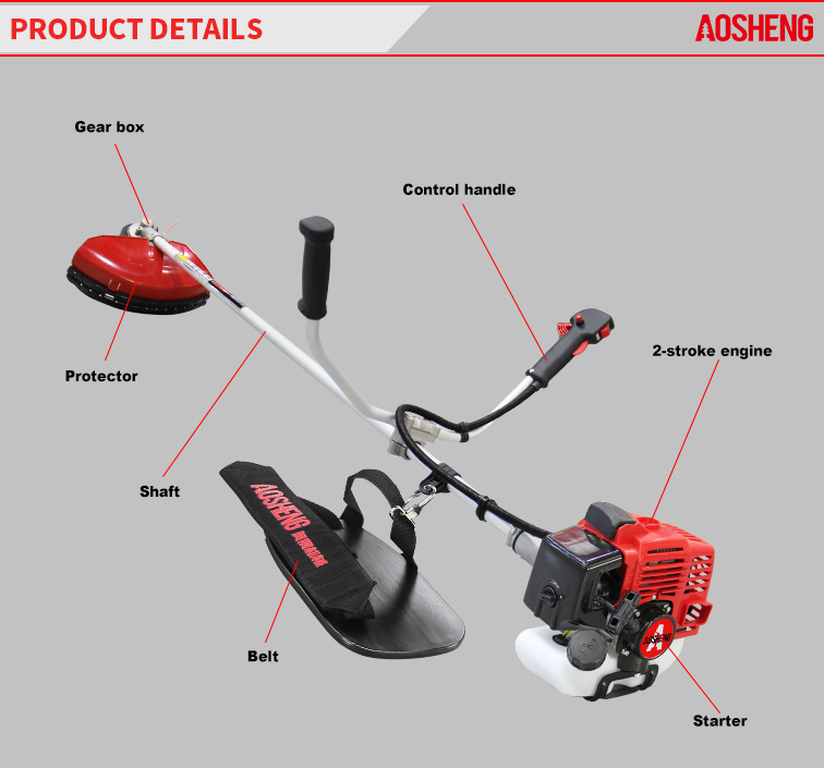 เครื่องยนต์ 4 จังหวะสมรรถนะสูง, การกระจัดคือ 38CC การใช้งานอย่างมืออาชีพในพื้นที่รกร้างที่เปิดโล่ง ท่อขนาด 26 มม.* 1.5 มม. เพลายืดหยุ่นแข็งแรง ความกว้างของการตัดคือ 420 มม. อายุการใช้งานมา...
