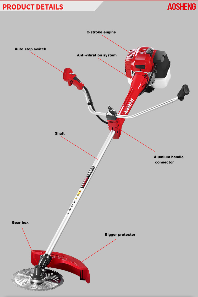 เครื่องยนต์ 4 จังหวะสมรรถนะสูง, การกระจัดคือ 38CC การใช้งานอย่างมืออาชีพในพื้นที่รกร้างที่เปิดโล่ง ท่อขนาด 26 มม.* 1.5 มม. เพลายืดหยุ่นแข็งแรง ความกว้างของการตัดคือ 420 มม. อายุการใช้งานมา...