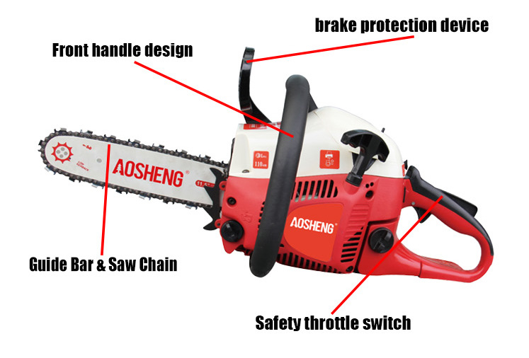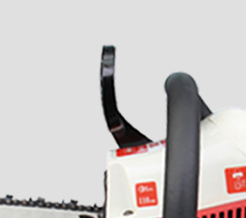 | 02อุปกรณ์ป้องกันเบรกการตอบสนองของเบรกมีความละเอียดอ่อน ปรับปรุงความปลอดภัยในการทำงาน แฮนด์ด้านหน้าและแฮนด์ด้านหลังถูกสร้างเป็นหนึ่งเดียว ด้วยโครงสร้างที่เรียบง่ายและมั่นคง กดอุปกรณ์ให้หยุดเลื่อยโซ่ได้ |