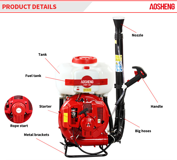 เครื่องยนต์สมรรถนะสูงพร้อมอุปกรณ์ตกแต่งคุณภาพสูง ปั๊มแรงดันมิเตอร์ทองแดง ทนต่อการกัดกร่อน เอฟเฟกต์ละอองสูง ใช้ในการเกษตร การป้องกันโรคระบาด และการฆ่าเชื้อ